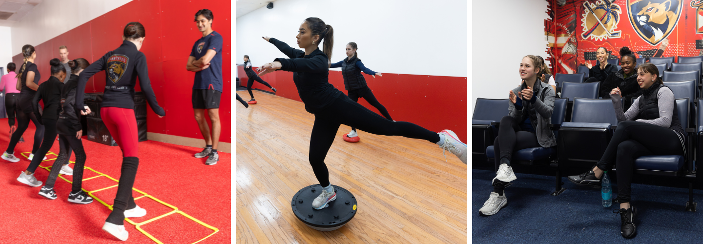 The Panthers Skating Academy - High Performance Program is designed to offer full training support for the competitive figure skater. Flexible package options allow skaters to tailor training to fit their needs throughout the season. Each package includes on-ice/off-ice group clinics, freestyle sessions and monthly skaters ED classes. Packages are renewable each calendar month and guests are welcome as trial participants. Eligible full time participants must be a member of the Panthers FSC and train during school hours. Applicant must be approved and go through the onboarding process prior to participation. A $115 non-refundable application fee is due at the time of application submission.